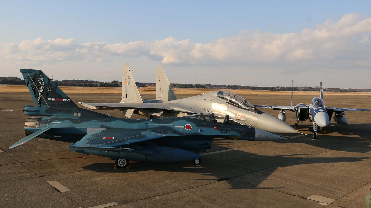 The IAF contingent consisted of 4 Su30MKIs, 2 C17 Globemaster strategic air lifters, and one IL78MKI air to air refueler. The JASDF was represented by 4 Mitsubishi F2s (a advanced derivative of the legendary F16 Fighting Falcon) and 4 F15J Eagles.